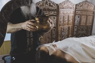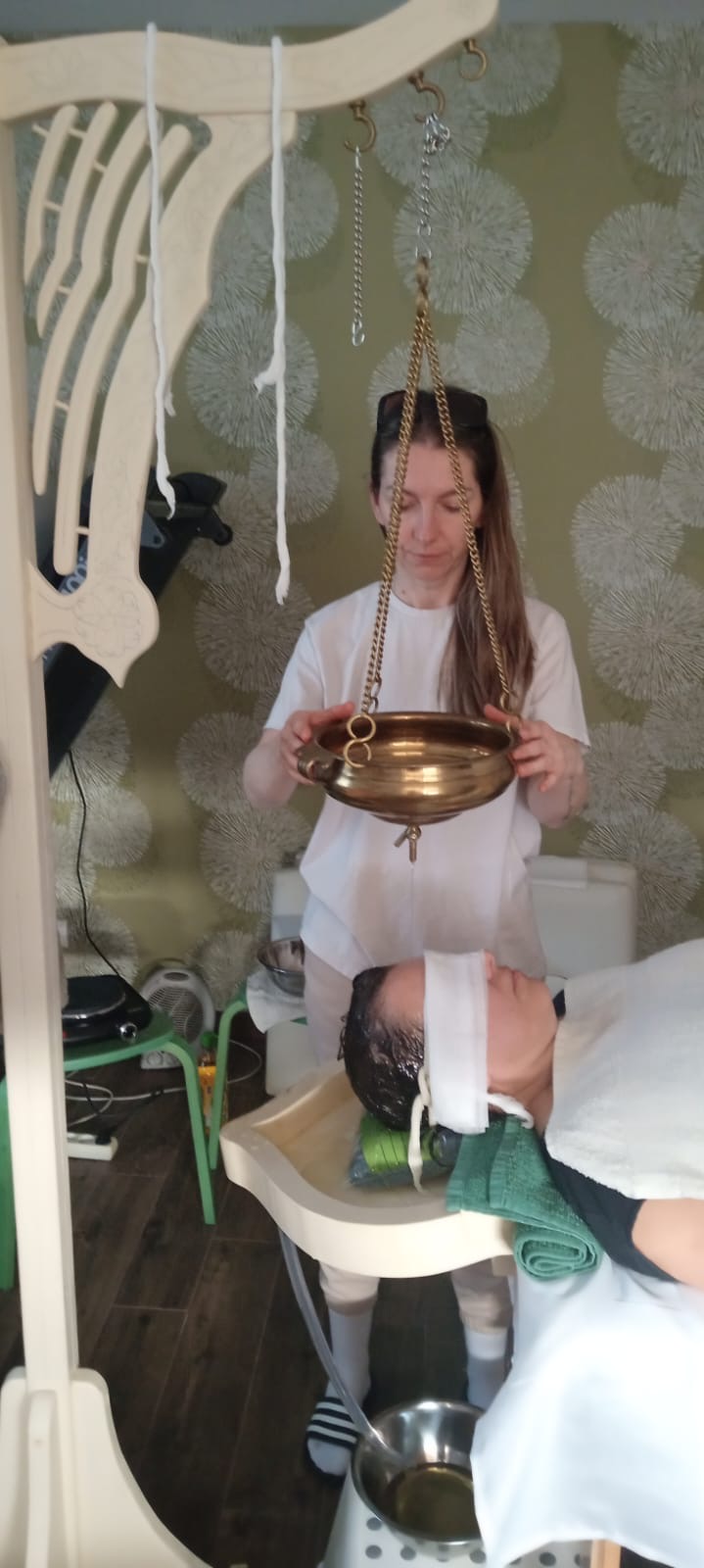 - Shirodhara se nepodává osobám, které mají vyrážky na hlavě, úžeh, nádor na mozku